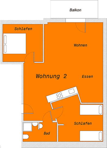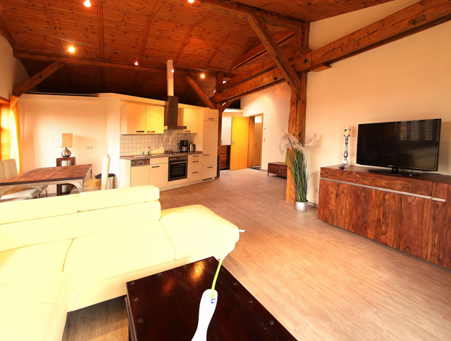 Unsere ebenso exklusiv und modern eingerichtete Ferienwohnung 2 ist ideal für bis zu 4 Personen (bei Aufbettung bis 6 Personen).