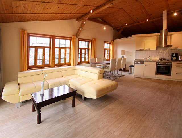 Zum ca. 50 qm großen Wohnbereich gehören zwei separate Schlafzimmer. In den großen und hellen Räumen lässt es sich bei jedem Wetter gemütlich und komfortabel in einer außergewöhnlichen Atmosphäre wohnen und entspannen.
